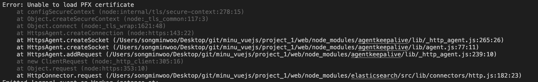 노드를 이용해 엘라스틱서치 클라이언트 연결 중 발생했던 에러