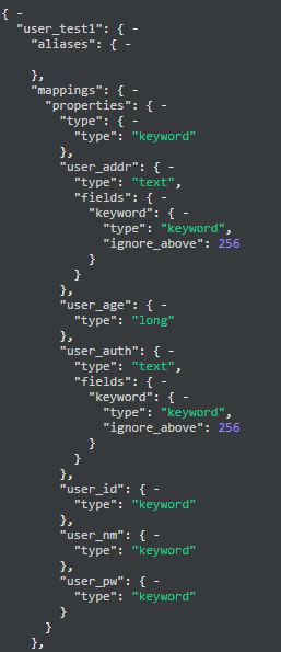 아래와 같은 다이나믹템플릿을 사용하지 않은 사용자 인덱스(user_test 1)가 있고 치자.