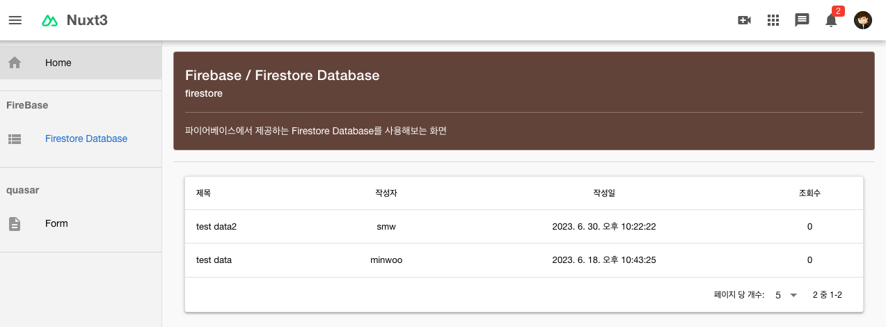 최근 시간 날 때 nuxt3를 공식문서를 보면서 조금씩 이용해 보다가 vuefire라는 걸 이용해 파이어베이스를 쉽게 사용할 수 있는 것 같아 한 번 사용해보려고 했으나.... 생각보다 불편해서 그냥 firebase 패키지만 사용했다.