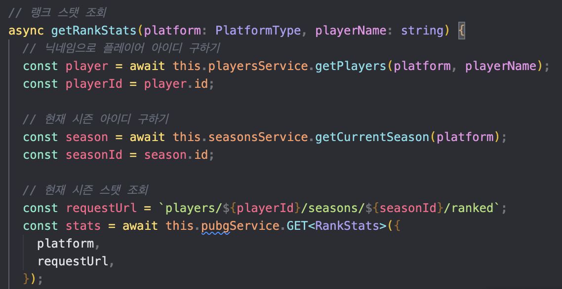 그래서 플레이어 스탯 검색할 때 한 번에 3개의 요청이 필요하고, 랭크와 일반 2개를 조회하면 플레이어 1명당 6개의 요청이 들어간다.