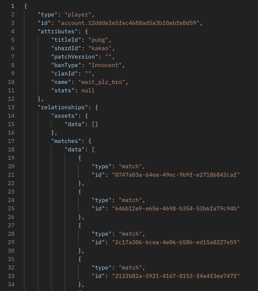 플레이어에 대한 스탯 정보를 검색하려면 저 id를 얻어야 한다.