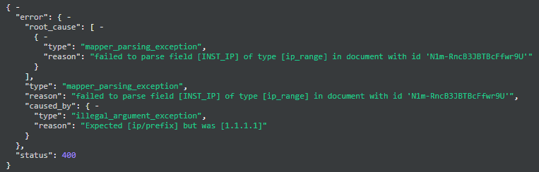 필드 타입이 ip_range인 필드는 범위로 저장할 수 있고, 단일 ip로 저장할 수 없다.