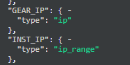 type이 ip인 필드는 저장할 때 "GEAR_IP":"1.1.1.1" 이런 식으로 단일 데이터로 등록해야 한다.