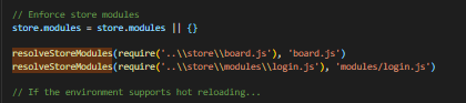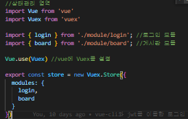 NuxtJS에서는 store 디렉터리에 index.js를 생성하면 활성화되고 위에 처럼 별도의 모듈 지정을 하지 않아도 파일들을 생성하면 모듈화가 돼서 사용이 가능하다는 것 같은데