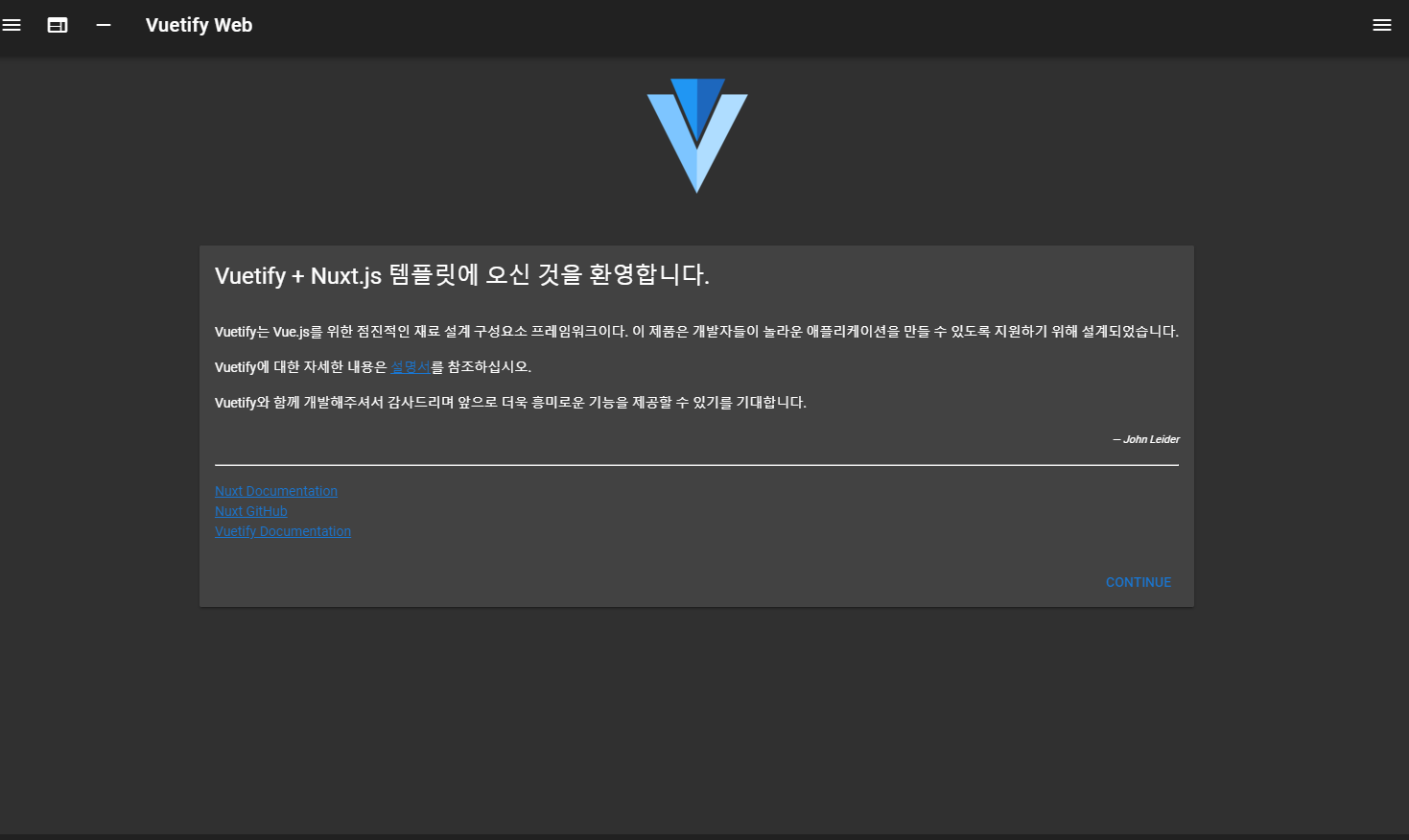 이제 웹이 실행됐으니 vuetify 기능이 잘 되는지 확인해보기 위해
